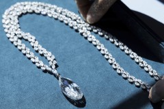 Among standout pieces in the auction —- which features sapphires, emeralds, pearls, diamonds and much more — is the 90-carat “Briolette of India” diamond, the centerpiece of a necklace adorned with smaller diamonds, which has a pre-sale estimate of $10 million to $15 million. The nearly 26-carat “Sunrise Ruby” also goes under the hammer: It fetched a record $30 million when Heidi Horten bought it at a Geneva auction eight years ago.