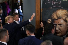 After the taping, Trump visited the Front Street Pub & Eatery in Davenport, where he stopped by tables and signed red “Make America Great Again” hats, according to video of the event.