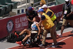 It forced USA Track and Field to put a halt to the action at about 3 p.m., shortly after heptathlete Taliyah Brooks was being carted off the track in a wheelchair. Brooks was in fourth place when she went down during javelin warmups. She did not make it back, and when the competition resumed some five hours later, Annie Kunz got the win.