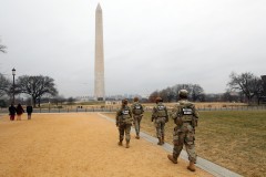 National Guard members patrol the Washington Mall, with the Washington Monument in the background, Friday, Jan. 9, 2026, in Washington. (AP Photo/Rahmat Gul)   (Associated Press)