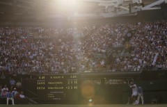 But that duo played on and on, past 8 p.m., when the descending sun's reflection off a piece of the arena bothered Nadal so much that he held up action and chair umpire Ali Nili asked spectators to stand in the way and block the rays. A few games later, Nili told fans to stop doing the wave, suggesting they wait for the next changeover to resume.