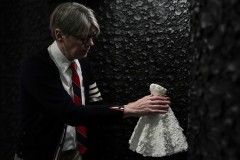 Another key difference: This show will be a multisensory experience, involving not just sight but smell, sound and touch. Organized into themes of earth, air and water, the show makes use of a “smell artist” who extracted and analyzed molecules from clothing, creating scents visitors can now sniff from plastic tubes. Curators have also captured sounds of fabrics in an echo-free chamber, and used 3D scans to replicate embroidery patterns for touching.