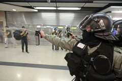 As protesters chanted slogans at the New Town Plaza shopping mall in Sha Tin, police said they moved in after some "masked rioters" with fire extinguishers vandalized turnstiles and smashed windows at the subway station linked to the mall.