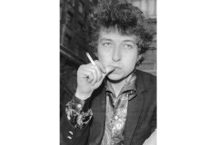 Dylan sat “with my portable typewriter at my white formica breakfast bar in a swirl of chain-lit cigaret smoke, his bony, long-nailed fingers tapping the words out” on copy paper, Aronowitz was quoted as writing.