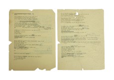 The typewritten lyrics, which covered three drafts of the 1965 song, were written on two sheets of yellow paper, with Dylan’s annotation on the third draft.