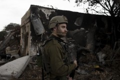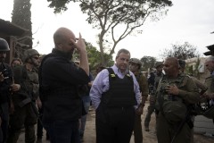 Christie, donning a flak jacket and flanked by an entourage of Israeli soldiers, made his way through homes with walls riddled by bullet holes and couches stained with blood. Over a month since the attack, many Kfar Azza houses are burnt-out and destroyed — structures left standing are scribbled with Arabic graffiti.