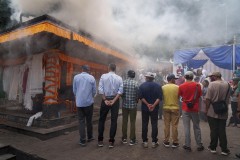 Family, friends, mountaineers and government officials gathered at the funeral ground, offering flowers and scarfs that were place on her remains, which were then rested on a stack of wood. Buddhists monks lit the pyre as they played musical instruments and chanted prayers while mourners lit incense.