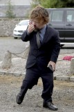 The couple and guests arrived for the afternoon service at Rayne Church, close to the 900-year-old Wardhill Castle in northeast Scotland, which is owned by Leslie's family. Harington, wearing a morning suit, and Leslie, in a flowing ivory gown and veil, smiled at members of the public who had gathered outside the church.