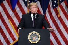 In his remarks, Trump stressed his "serious plan to defend our homeland." He called anew for construction of a border wall with Mexico, pledged to end "chain migration" of immigrants' relatives and to close "loopholes that undermine enforcement" of immigration restrictions.
