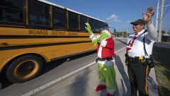MARATHON, Fla. (AP) — Several motorists who were speeding through an elementary school zone on the Florida Keys Overseas Highway received an odorous onion as a reminder to slow down from a county sheriff’s deputy dressed as the Grinch.