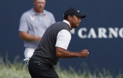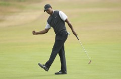 A bogey at the par-3 16th stalled the momentum, and Woods had to scramble for a par at the last after landing his drive on the bank of the Barry Burn and into the deep rough.