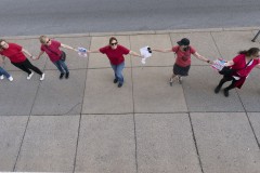 In the demonstration, scores of people gathered in the late afternoon along a three-mile route from the children's hospital at Vanderbilt University, where victims of the school shooting were taken, to the state Capitol, some with arms outstretched and hands clasped, and others linked arm in arm. The demonstration stretched from sidewalks near campus to a plaza outside the Capitol where many held signs with messages such as, “I'm A Voice for Gun Safety.”