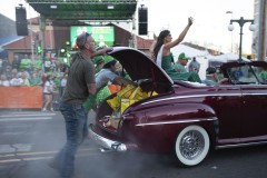 The parade includes other events, including a concert and a “Blarney Stone kissing contest.” Before the parade kicked off there was an official measuring of the route to verify its shortness. A bugler from Oaklawn, a Hot Springs horse track and casino, marked the start.