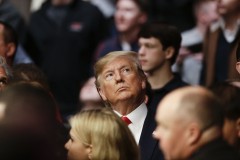 Protesters outside MSG chanted "Danger, danger, there's a Fascist in the White House," over a bullhorn and held signs that read "Trump/Pence Out Now!" Once the fights started, there were no noticeable signs or sustained calls of support or protest for Trump. The only jabs were delivered inside the fenced-in, 4-foot octagon came from the fighters. Lewis was the only winner who mentioned Trump, and the crowd of nearly 20,000 seemed largely uninterested in him.