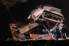 Associated Press images taken Tuesday showed the remains of the first two cars of the second train, severed from the rest of the train and lying beside the tracks. Train seats had been ejected onto the rocks that provide packing under the tracks.