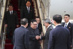 Hours earlier, a jet carrying Kim landed, and after shaking hands with the Singapore foreign minister, Kim sped through the city's streets in a massive limousine, two large North Korean flags fluttering on the hood, surrounded by other black vehicles with tinted windows and bound for the luxurious and closely guarded St. Regis Hotel.