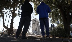 “They’re taking the wrecking ball and hitting the side of it over and over again, and it’s still just ineffective," Shawn Graybill, a 24-year-old who lives nearby and came out in his pajamas to watch the demolition, said Monday morning. “It's not knocking the tower down.”