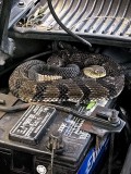 The man says the snake slithered across the engine block and curled up on the battery as he opened the hood of the car earlier this month in rural Hancock, on the Pennsylvania border about 115 miles northwest of New York City. State environmental conservation police officers were called out to remove the reptile.