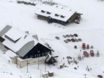 A military helicopter airlifted the first group of eight skiers to safer ground, according to footage shown by NHK public television. The rescued skiers, wearing helmets, were handed a bottle of tea each and escorted into a cabin.