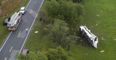 Troopers said he was driving the 2001 Ford Ranger when it crossed into the center line on State Road 40, a straight but somewhat hilly two-lane road that passes through horse farms. The truck sideswiped the bus, causing it to veer off the road at about 6:40 a.m. It crashed through a fence and into a tree before overturning. In addition to the eight killed, at least 40 were injured.