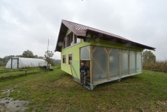The house in Srbac was designed and built by 72-year-old Vojin Kusic. With a green facade and red metal roof, it can rotate a full circle to satisfy his wife Ljubica's shifting desires as to what she would like to see when she looks out of its windows.
