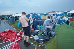 Organizers on Saturday urged tens of thousands at the festival to seek shelter in their tents or cars, saying local authorities had ordered them to put the festival on hold.