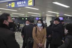 Seemingly dozens of passengers, most of them wearing face masks and some accompanied by children, lined up at Pyongyang International Airport. North Korean health workers wearing white protective suits scanned them for fevers.