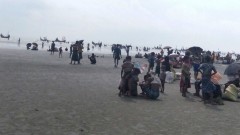 The 18-year-old provided The Associated Press with cellphone photographs she took Tuesday along the beach in southern Maungdaw township in Rakhine state. Several of the photos show hundreds of people sitting on the ground, with meager belongings. Only some had tarps or umbrellas to protect themselves from the sun.