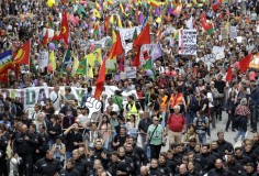 The meetings competed for attention with rioting by anti-capitalist demonstrators outside the heavily secured Hamburg Messe convention center. Rioters set up street barricades, looted supermarkets and attacked police with slingshots and firebombs.