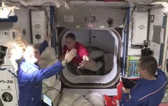 As they prepared for the space station linkup, the Dragon crew beamed down live window views of New Zealand and a brilliant blue, cloud-streaked Pacific 250 miles below.