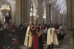 The crown — a circular band of branches encased in a gilded golden tube — was brought back to its historic home in a ceremony presided over by the archbishop of Paris and attended by knights and dames of the Equestrian Order of the Holy Sepulcher, marking a key moment in the cathedral’s restoration journey.