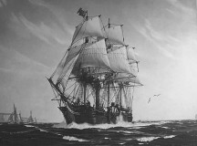 The Savannah, a sailing ship outfitted with a 90-horsepower steam engine, traveled mainly under sail across the Atlantic, using steam power for 80 hours of the nearly month-long passage to Liverpool, England.