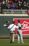 Well, the big bird didn't want to visit the mound, perhaps wary of Major League Baseball's new rule limiting such trips to keep the pace of play. Instead, it picked out another target at Target Field.