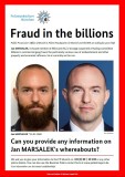 The poster, headlined “fraud in the billions” features a 2017 photograph of Marsalek with a full beard and mustache, and a 2019 picture of him clean shaven.