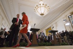 Trump held firm on another controversy — trade and illegal immigration from Mexico. He told reporters at a joint news conference with May that he had a "very good call" with Mexican President Enrique Pena Nieto earlier in the day, but he reaffirmed his belief that Mexico has "outnegotiated and beat us to a pulp" on trade — and that would change.
