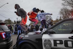 Public mourners included Wright's family and friends who gathered, wept and consoled each other alongside protesters who carried “Black Lives Matter” flags, jumped atop police cars, confronted officers and walked peacefully in columns with their hands held up. On one street, written in multi-colored chalk: “Justice for Duante Wright.”