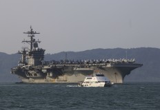 The aircraft carrier USS Vinson and its strike group were accompanied by the Japanese destroyer JS Ise and its three anti-submarine warfare helicopters.