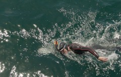 Lecomte, of Austin, Texas, set out on June 5 from Japan's Pacific coast and was swimming an average of eight hours a day. Violent storms had already forced him to interrupt the swim after 500 nautical miles and return to Japan in late July. The mainsail broke on Nov. 10.