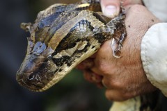 Rahill, who has caught almost 800 pythons, said the key to success is persistence: Every eight hours of hunting averages one snake caught. It takes a keen eye, looking for a telltale glistening under the water or in the bush during the day or staking out levees at night, waiting for one to appear.
