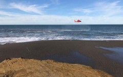 The U.S. Coast Guard searched Sunday and Monday with two helicopters and a 47-foot motorized life boat while state police and other rescuers used ATVs. They found only Thomas' jacket and a child carrier he had been wearing.