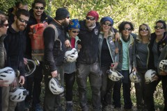 With big smiles on their pale faces, the 15 left their voluntary isolation in the Lombrives cave to a round of applause and basked in the light of day while wearing special glasses to protect their eyes after so long in the dark.
