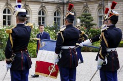 He also reviewed the military. Troops present at the ceremony included part of the crew of the Monge, the French navy's second-biggest ship that is key to France's nuclear deterrent. It was notably used for the tests of France’s nuclear-capable submarine-launched M51 missiles.