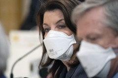 Speaking from her office in New York City, Hochul said infection rates have since declined to a level where it is safe to rescind the broad masking order.