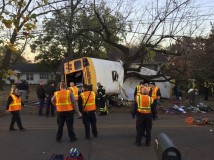 Fletcher said police were interviewing the bus driver to determine what happened and told reporters later that investigators were looking at speed "very, very strongly" as a factor. The bus was the only vehicle involved but the crash scene covers a significant area, he said.