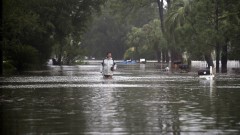Communities along Georgia's coast were swamped by storm surge and rainfall arriving at high tide Monday afternoon. On Tybee Island east of Savannah, Holland Zellers was grabbing a kayak to reach his mother in a home near the beach.