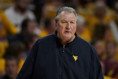 Huggins entered the Basketball Hall of Fame last September. In 41 seasons, his teams have gone to 25 NCAA Tournaments, finished ranked in the top 10 of The Associated Press poll seven times and finished under .500 five times. The Mountaineers have 11 NCAA Tournament appearances under Huggins.