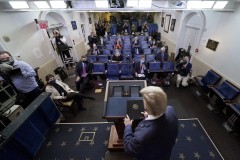 Standing behind the presidential seal, Trump used a White House setting symbolizing the power of his office to assail an election he portrayed as rife with fraud and corruption. One allegation after another had no basis in fact, such as his accusation that election officials in Pennsylvania and Detroit tried to ban election observers from polling stations.