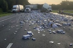 BROOKSVILLE, Fla. (AP) — A Florida highway had to temporarily close Wednesday after a semitrailer carrying cases of Coors Light crashed and turned the roadway into a silver sea of beer cans.