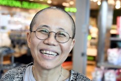 Last year, she appeared pale, gaunt and somber in images released by the authorities as she cared for Liu Xiaobo just before his death from liver cancer in a hospital under police custody. She was shown at his closely staged funeral dressed in black and wearing dark sunglasses as she clutched a photograph of her husband.