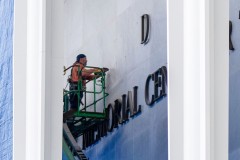 Blue tarps were hung in front of the building to obscure workers on scaffolding as they executed the transformation. Hours later it had a new name: The Donald J. Trump and The John F. Kennedy Memorial Center for the Performing Arts.